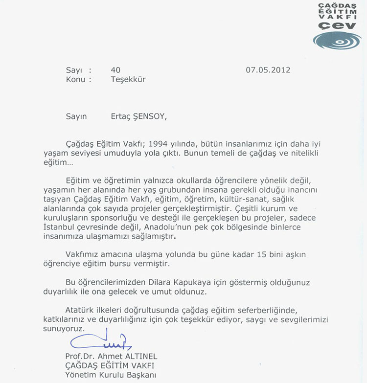 “Sosyal sorumluluk konusunda son derece duyarlı olan Nova Sac Sistemleri,Cagdas Egitim Vakfı ogrencilerinden Dilara K.’nın basarı ve mutlulugunda ufak da olsa bir pay sahibi olmaktan dolay? gurur duymaktad?r. Nova, bu gibi cal?sma ve katkılarını surdurmeye kararlıdır.”